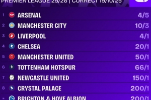 全文摘要:利物浦联赛三连败后,英超夺冠赔率已跌至第三。阿森纳以5赔4成为最大热门,曼城以3赔10紧随其后,切尔西、曼联等队赔率则大幅落后。