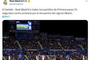 在赫塔菲主场佩雷斯球场,球员们纷纷响应西班牙足球运动员协会的倡议。赫塔菲与皇家马德里的球员在比赛开场时实施了15秒的暂停活动。此举旨在呼应西甲第九轮所有赛事中由西班牙足球运动员协会组织的抗议行动,该协会在声明中解释道,此象征性停赛旨在"就西甲联盟可能将国内联赛移至美国举行的计划,抗议其缺乏透明度、缺乏对话且决策有失严谨"。