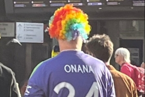 全文摘要:曼联记者Luckhurst晒出一张球迷照片:该球迷身穿奥纳纳球衣,却戴着小丑假发。此举是对奥纳纳在曼联糟糕表现的辛辣嘲讽。奥纳纳因表现不佳,已于今年夏窗被外租至土耳其,目前状态依旧未回勇。