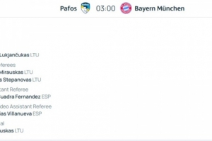 全文摘要:拜仁欧冠客战帕福斯的裁判组名单公布。主裁为立陶宛的卢克扬丘卡斯,其三位同胞分别担任助理裁判和第四官员。视频裁判(VAR)及助理视频裁判(AVAR)则由西班牙的费尔南德斯和比利亚努埃瓦出任。