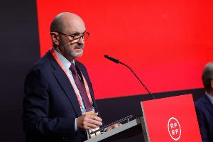 全文摘要:西班牙足协主席卢赞总结上任10个月工作,强调足球的社会与经济价值及男女足平等。他呼吁各方团结,肯定国王杯新赛制,并力挺在沙特举办西超杯,称其为创收超5000万欧元、惠及国内俱乐部的必要举措,以推动西甲全球化。