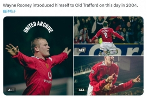 曼联官方社媒晒出鲁尼首秀的照片,回顾那令人难忘的一天。