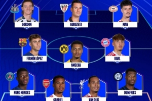全文摘要:欧冠官方公布第3轮最佳阵容,巴萨球员费尔明当选本轮最佳球员。该阵容由11名球员组成,前锋线包括戈登、古鲁泽塔和丹尼斯-曼;中场由恩梅查和卡尔等领衔;后防线则由门德斯、加布里埃尔、范戴克和邓弗组成;热刺门将维卡里奥镇守龙门。