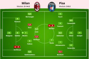 全文摘要:AC米兰2-2绝平比萨,赛后《米体》为球员打分。莫德里奇(7分)表现抢眼,莱奥(6.5分)建功,但门将迈尼昂(6分)和后卫德温特(4分)失误致险胜。锋线希门尼斯(4.5分)持续低迷。主帅阿莱格里(5.5分)对比赛暴怒愤然离场,球队未能巩固优势。