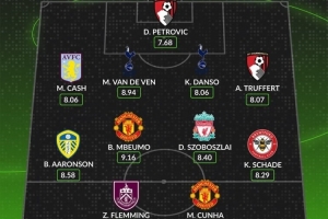 全文摘要:英超第9轮最佳阵出炉,伯恩茅斯门将佩特洛维奇领衔。曼联前锋姆伯莫以9.16分荣膺全场最高分,弗勒明紧随其后。热刺双星范德芬和丹索入选后防,曼联与伯恩茅斯各有2将入围。