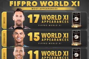 FIFPRO年度最佳阵入选次数前10: