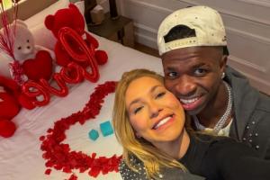 全文摘要:皇马球星维尼修斯虽因国家德比情绪爆发遭争议,但情场得意。他于社媒晒出与女友、千万粉丝主播弗吉尼亚的甜蜜合照,并配文“V❤️V”示爱。此前,弗吉尼亚已原谅维尼修斯的“劈腿风波”,现身马德里为其加油,并暗示未来可能结婚,两人关系稳定。