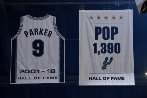 这面旗帜的每一处细节,都是对传奇的精准注解。白色底纹上,五颗金色星星对应着2003至2014年间的五座总冠军奖杯,底部“HALL OF FAME(名人堂)”标识铭记着他2023年的荣耀加冕,而核心的“1390”字样,则是波波维奇执教的丰碑。数据不会说谎:2214场执教、1390场胜利、62.8%胜率、22个赛季带队闯进季后赛,季后赛总胜场达到170场,5次总冠军,3次获得年度最佳教练。但比起数字,更动人的是致敬方式——没有盛大仪式,恰如波波维奇本人,永远将聚光灯让给团队。