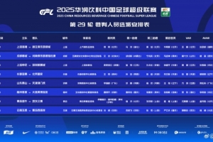 全文摘要:10月31日,中国足协公布中超第29轮裁判名单。焦点战海港vs浙江由傅明执法,海牛vs三镇则由沙特裁判穆罕默德-萨米执法。其余场次裁判也已全部确定。