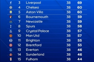 全文摘要:根据Opta数据预测,2025/26赛季英超最终排名中,阿森纳以80分高居榜首夺冠。曼城与利物浦同积69分分列二、三位。切尔西与维拉并列第四,积60分。曼联位列第十,积57分。而狼队、西汉姆联等队则排在积分榜末尾。