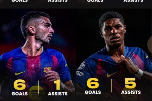 全文摘要:巴萨西甲3-1胜埃尔切后,媒体公布了部分进攻球员数据。亚马尔4球5助,费尔明与费兰-托雷斯各6球2助及1助,拉什福德则贡献6球5助。(注:原文中拉什福德数据存疑,应为球员误植。)