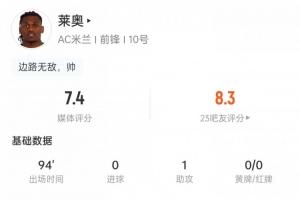 全文摘要:在意甲第10轮中,莱奥发挥出色,送出助攻,帮助米兰1-0力克罗马。他全场5次射门,2次射正,并有1次关键传球,成功制造威胁。尽管丢失球权较多,但其进攻端的积极表现仍是球队取胜的关键。