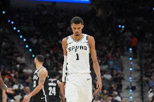 文班亚马本场表现依旧低迷,他出战32分41秒,14投5中,三分2中0,罚球11中9,仅得19分8篮板3助攻1抢断1盖帽,出现5失误,并且犯满离场。