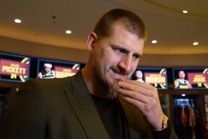当被问及阿隆·戈登的那记扣篮如何时,约基奇反问道:“我不记得他扣篮了。”他还问远处的戈登道:“你什么时候扣篮了?”