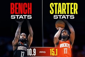 先发登场的16场比赛,火箭赢了12场,伊森场均15.1分6.8板1.9助攻,三分命中率32.2%、真实命中率59.9%。替补登场的41场比赛,火箭赢下24场,他场均10.9分6.2板.1.3助,三分命中率35.2%、真实命中率55.1%。