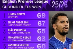 全文摘要:英超11轮战罢,埃弗顿前锋恩迪亚耶以69次成功对抗高居榜首。诺丁汉森林的安德森与热刺的帕利尼亚分列二、三位。榜单中,埃弗顿与诺丁汉森林球员表现亮眼,曼城、纽卡斯尔联等队球员也跻身前十,展现了激烈的身体对抗竞争。