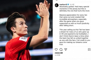 无缘亚洲杯,安永佳社媒发文:此刻令人心碎,但我坚信球队将变得更加强大。