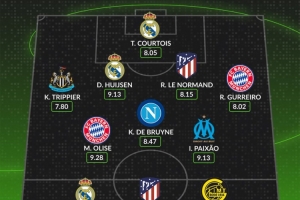 全文摘要:欧冠第二轮最佳阵容出炉,由WhoScored评选。皇马的姆巴佩和库尔图瓦领衔,马竞的阿尔瓦雷斯入选。拜仁的奥利塞与格雷罗、皇马的赫伊森等名将也成功跻身阵容。该阵容汇集了本轮表现最出色的球员,展现了欧洲足坛的顶尖水平。