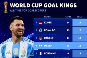 全文摘要:2026年世界杯用球“三重浪”已发布。世界杯历史射手榜前十中,克洛泽以16球居首,罗纳尔多、盖德-穆勒紧随其后。现役球员梅西(26场13球)和姆巴佩(14场12球)也跻身前十。