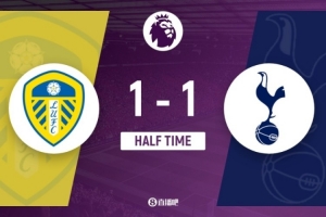 全文摘要:英超利兹联1-1热刺。上半场战罢,双方战平。热刺的特尔先拔头筹,随后利兹联的奥卡福扳平比分。比赛过程激烈,特尔和罗登的射门均击中门框,双方互有攻守,半场未能分出胜负。