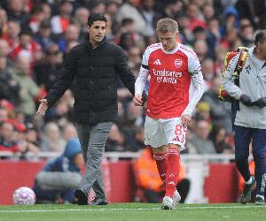 对阵西汉姆膝盖与对方球员相撞,因伤被换下场,阿尔特塔赛后表示厄德高伤势并不乐观,阿森纳确认球员左膝内侧副韧带受伤,因此退出挪威队名单,尚未给出具体的恢复时间表。