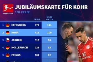 全文摘要:德国转会市场统计了德甲历史黄牌榜。埃芬博格以370场111黄高居榜首,多米尼克-科尔以311场100黄位列第二。该榜单展示了球员在联赛中的犯规记录,反映了他们在比赛中的激烈程度。