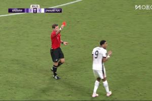 亚冠精英联赛东亚区第2轮,广岛三箭vs上海海港第90分钟,海港前锋古斯塔沃拼抢中犯规,主裁判果断直红将其罚下,VAR核实后维持了原判。