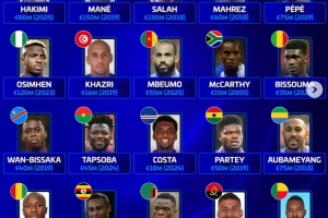 全文摘要:德国转会市场盘点非洲球员历史身价,萨拉赫与马内以1.5亿欧并列最高。奥斯梅恩(1.2亿欧)紧随其后,阿什拉夫(8000万欧)位列第三。该榜单展现了非洲足球人才的历史价值巅峰。