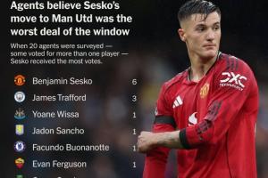全文摘要:The Athletic的经纪人调查中,曼联7650万欧签下舍什科以6票高票当选英超夏窗最差转会,被批“转会费过高且时机不当”。曼城3120万欧签下门将特拉福德以3票位列次席,其决策与球员发展前景受质疑。此外,切尔西、利物浦等多队的转会操作也各有经纪人投出反对票。