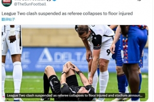 全文摘要:英乙球队布罗雷本赛季第三次因裁判受伤致比赛中断。此役主裁膝伤倒地,比赛暂停近10分钟,紧急征用边裁替补,补时长达15分钟。球队主帅称意外打乱了追分势头,俱乐部甚至开玩笑申请吉尼斯纪录。最终布罗雷1-2告负。