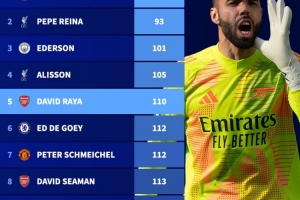 英超门将最快达成50场零封榜单:切赫与雷纳位列前二,拉亚跻身前五